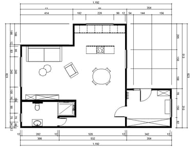 Wykonuję kompleksowe projekty wnętrz, które obejmują: